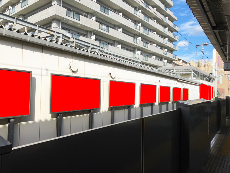 京急本線・能見台駅ホームの常設看板です。 主に駅構内外を利用される多数の方々への長期的な訴求が可能です。 写真はイメージです。この他にも複数の広告看板は...