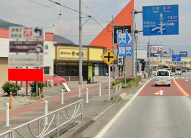 山梨県甲府市、国道20号線上阿原交差点付近の建植サインです。